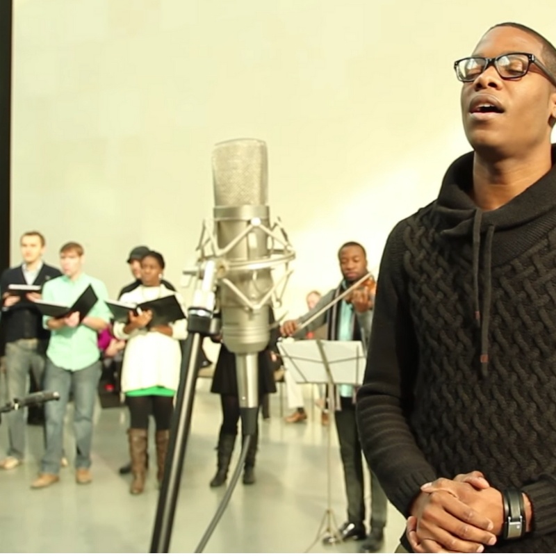 This video was taken at Museum of Fine Art (Boston) Shapiro Family Courtyard on Saturday, December 14th, 2013. The performers were from the illustrious Berklee College of Music in Boston. The soloist Mark Joseph is flawless, the full choir and string section heaven in your ears!